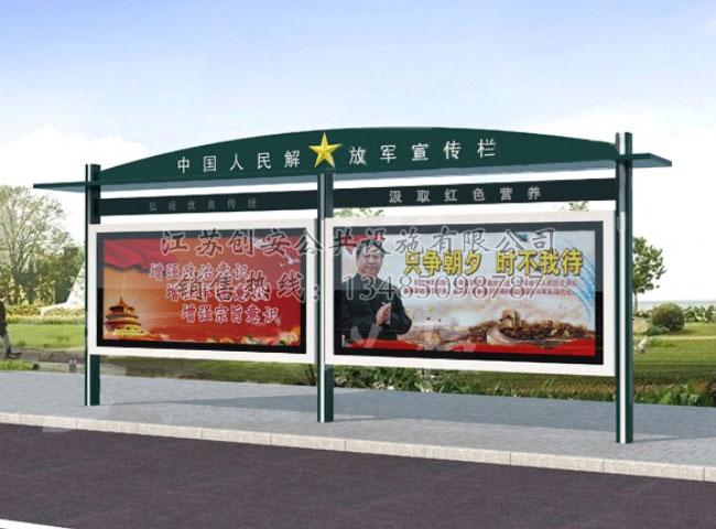 宣傳欄廠家-江蘇創安公共設施有限公司是一家國內知名的專業從事宣傳欄,公交候車亭,精神堡壘,法治宣傳欄,消防宣傳欄,部隊宣傳欄,校園文化宣傳欄整體規劃、設計、生產制作、安裝、售后服務及產品研發于一體的宣傳欄制造有限公司。
