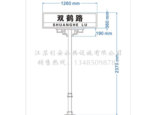 此款路名牌LMP-03主體采用鍍鋅鋼結構,表面采用氟碳金屬烤漆工藝,視窗面板采用鋼化玻璃,燈箱內置LED燈。具有外形美觀、表面耐腐蝕、抗風性能強、使用壽命長等優點。產品的樣式、尺寸、顏色、材質、配置等均可按需定制。
